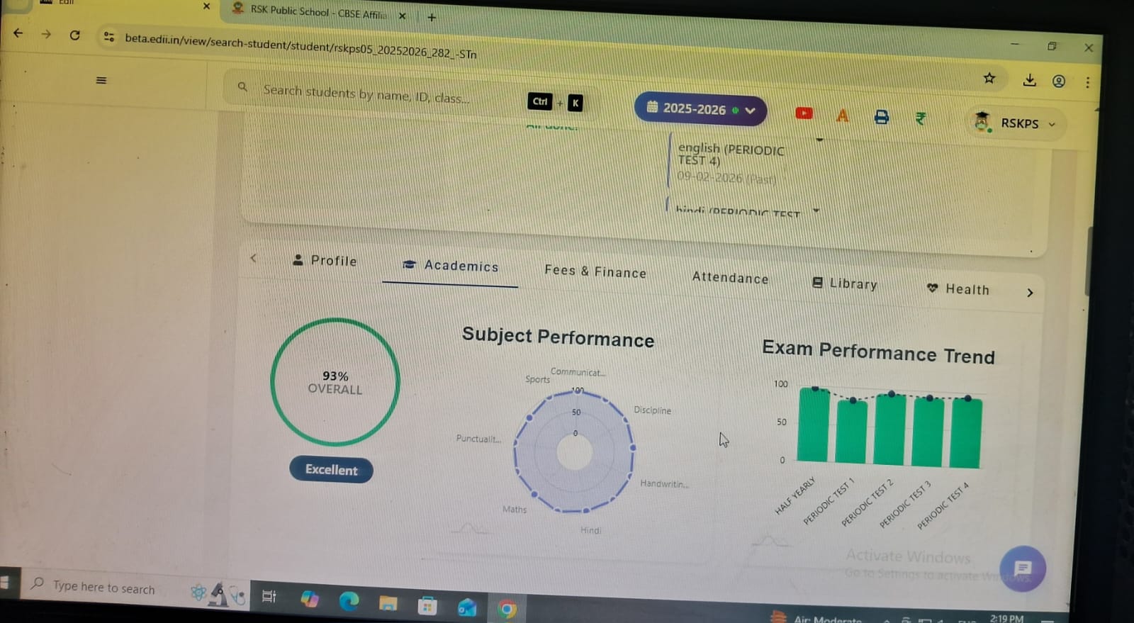 Based on comprehensive assessment of students before and after joining RSK Public School